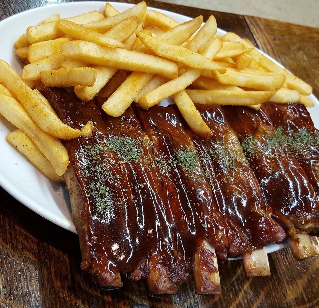 The Christmas Plate, which brings a full rack of ribs (12 ribs), 4 huge BBQ chicken legs, 300g of pulled pork, and a ton of fries to go with that.