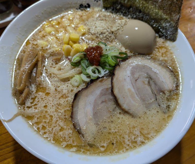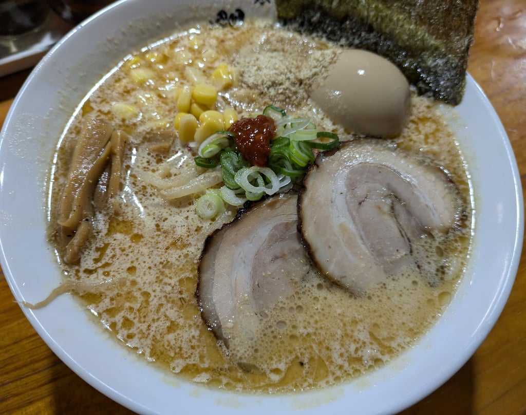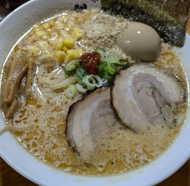 This was Mrs. Ibaraki Eats' order: White Miso Ramen. My wife made the right choice. There is a reason this is the most popular ramen at Montsuru, and that is because this ramen is fantastic. This miso ramen brought everything that a usual miso ramen brings, but it had a little extra. The grounded sesame seeds and the red hot sauce on top of the ramen are a welcome addition to this delicious ramen. My wife gave this ramen the thumbs up and let me try it. This ramen was hot, delicious, and full of meaty chashu. I loved every slurp I had of this ramen. The noodles were great, the egg was tasty, and the spicy sauce just gave everything a delicious kick. I would love to have this ramen again the next time I am driving towards Hitachinaka.