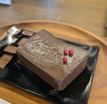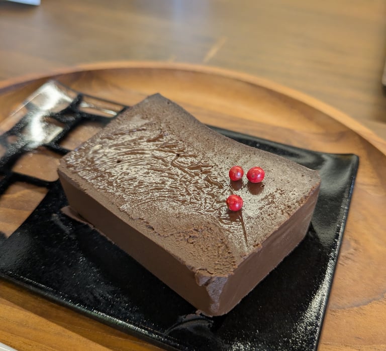 I know I said the café mocha was chocolatey, and in my first post, I mentioned that the hot chocolate my wife ordered was also chocolatey, but this sweet was the embodiment of chocolate. The moment my fork sank into this chocolate terrine, it felt extremely satisfying. It was so thick and rich with chocolate that it felt like cutting into a softer, luxurious brownie. When I took my first bite of this incredible dessert, I was transported to a land filled with chocolate and cream. The texture was unbelievably smooth and creamy. It felt like my taste buds were getting a massage. Eating this dessert felt amazing. It looked like a work of art, and it tasted like a master chef made it. I would love to have this again, and my wife agrees. She loved this dessert, and when she had it with her café mocha, she said she was in chocolate-overload heaven. Mrs. Ibaraki Eats was very happy with her choice of dessert. Our sweets adventure wasn’t over, though.