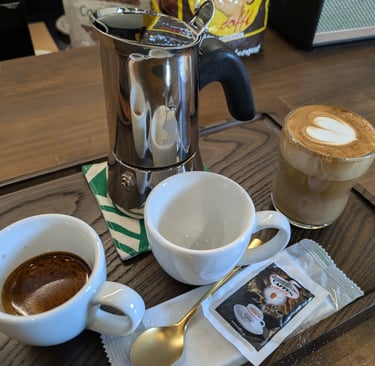 For the next espresso, I poured it into my cup from the moka pot and took a sip. I was honestly expecting it to taste almost the same as the first espresso, but I was completely wrong. I don’t know how or why, but this espresso tasted totally different. It was much more soothing than the first one. It had a lighter taste while still feeling like a strong coffee. It was smooth and easy to drink, and it helped me relax even more in the already calming atmosphere of the cafe.
